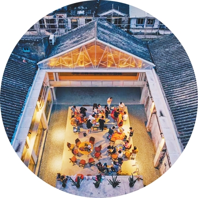 2015年,李繼津和合伙人看上了塘口舊墟兩處建筑,“原先是舊糧倉周邊的五金廠、鐘表廠,雖然建筑很舊,但很有設(shè)計(jì)感,而且舊墟與周圍的村子距離很近,有做社區(qū)改造的潛力?!闭f干就干,舊工廠逐漸被改造為時(shí)尚的青年社區(qū)空間——“塘口空間”,餐廳、青年旅舍、劇場、活動(dòng)空間等一應(yīng)俱全,舊工廠里原有的一些制造機(jī)械作為歷史記憶的“載體”也被保留下來?!敖ㄖ荒苊撾x鄉(xiāng)村?!崩罾^津說。