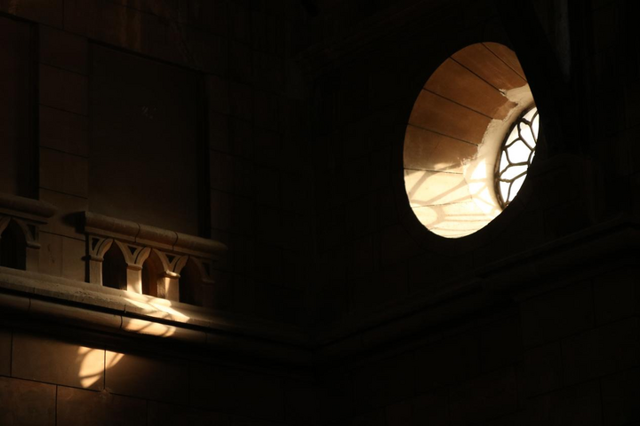 傍晚時(shí)分,夏風(fēng)習(xí)習(xí),天色黛青。我坐在棕色的椅子上,悠揚(yáng)的大提琴聲從穹頂上緩緩落下,浸潤(rùn)在斑駁的石柱縫隙里,又飄浮于塵埃之上,圓形天窗下有一道水滴形狀的光斑。在這樣的傍晚,每個(gè)人都能感受到安里甘的美。