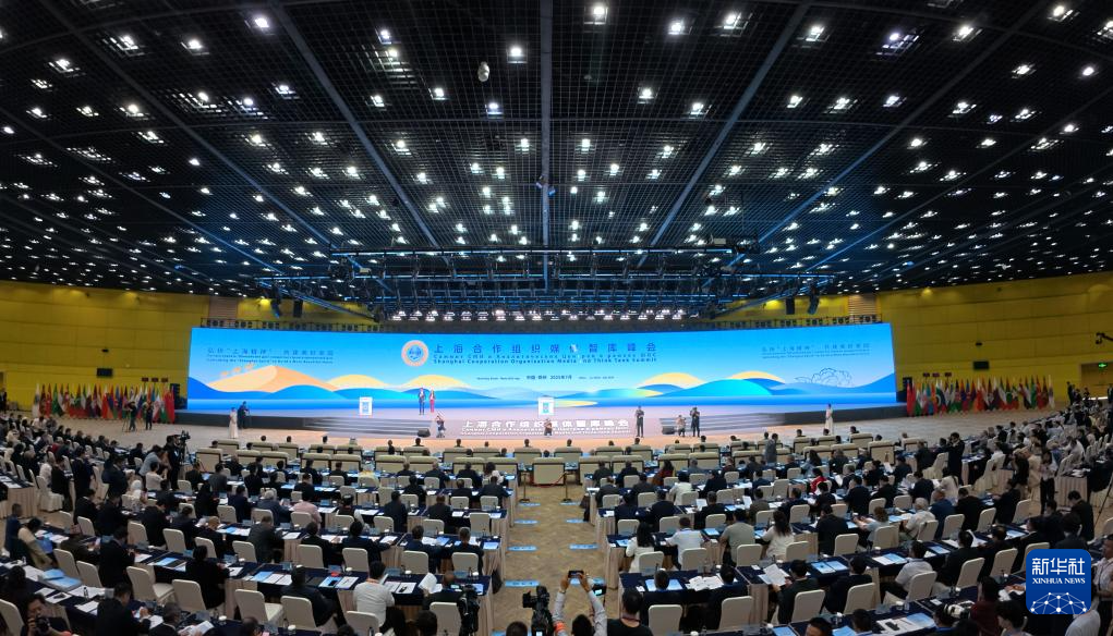 這是7月25日拍攝的上海合作組織媒體智庫峰會全體會議現(xiàn)場。新華社記者 朱祥 攝