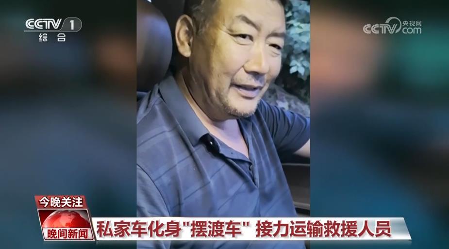 在記者跟隨救援人員 徒步趕往受災地區(qū)的路上時,一位灤平縣南大廟村的村民,開著私家車主動停下,義務承擔起擺渡救援人員的重任。
