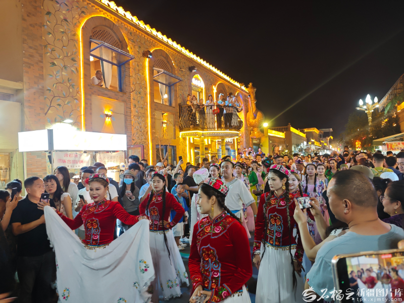 游客在阿勒屯古街觀看歌舞表演。石榴云/新疆日報記者 宋海波攝
