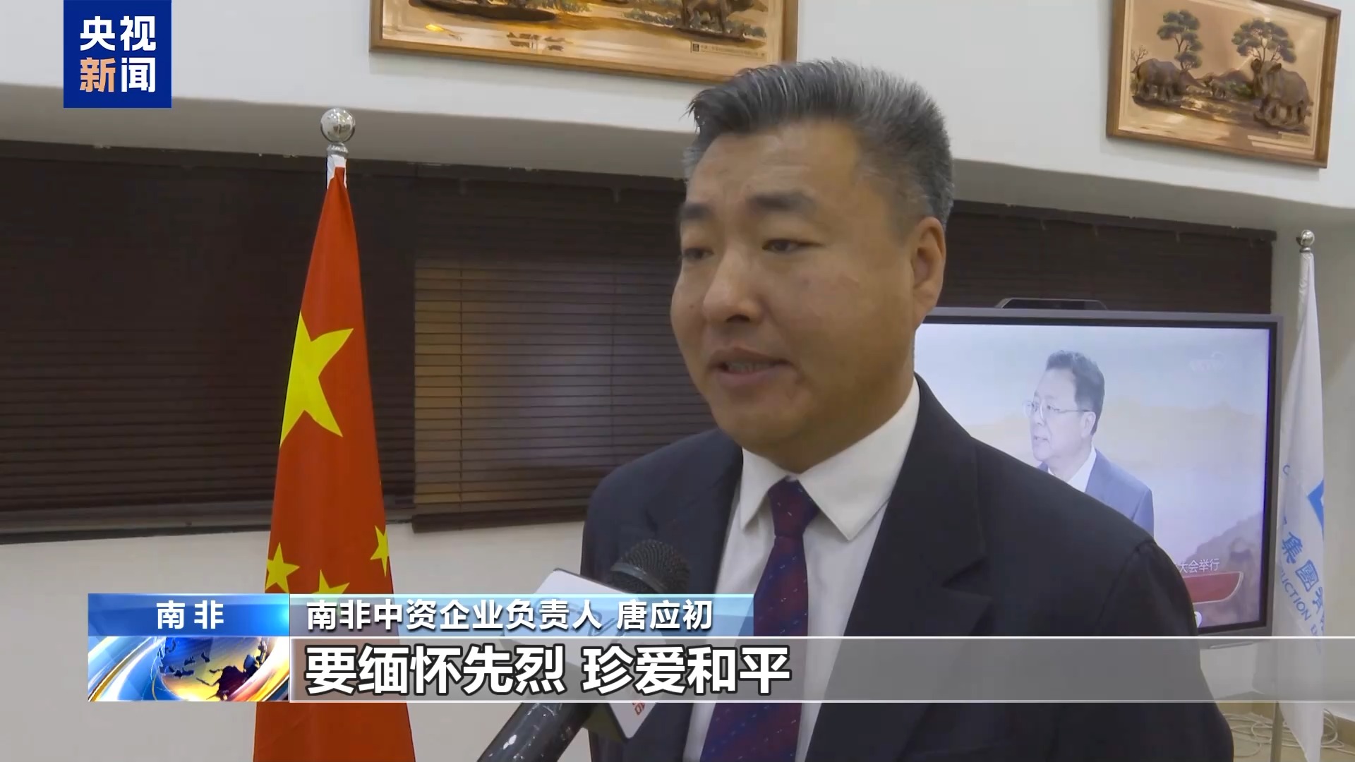 南非中資企業(yè)負責人 唐應初:歷史告訴我們要緬懷先烈、珍愛和平。只有團結才能勝利,只有合作才能共贏。作為海外建設者,今天我們胸懷祖國,奮戰(zhàn)一線。用實際行動證明,中國建設者攻堅克難、敢打必勝。