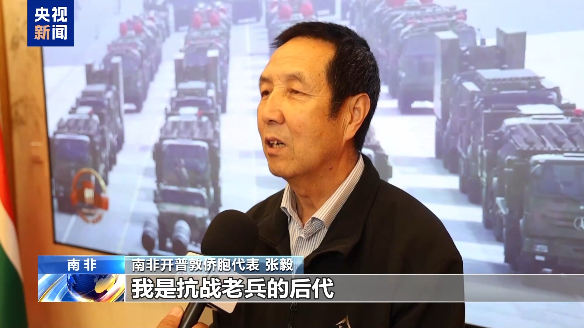 南非開普敦僑胞代表 張毅:我是抗戰(zhàn)老兵的后代,我父親1941年在冀中平原加入八路軍,曾參與多場戰(zhàn)斗。作為未經(jīng)歷戰(zhàn)爭的新一代,我們一定要繼承老一代革命先烈的精神,發(fā)揚他們的必勝信念,為世界和平貢獻力量。