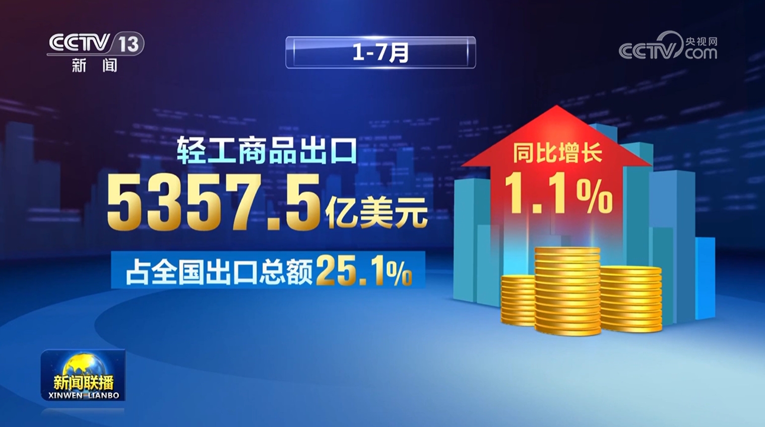 出口方面,繼續(xù)保持韌性。1—7月,輕工商品出口5357.5億美元,占全國(guó)出口總額25.1%,同比增長(zhǎng)1.1%;21個(gè)大類行業(yè)中11個(gè)保持增長(zhǎng)。