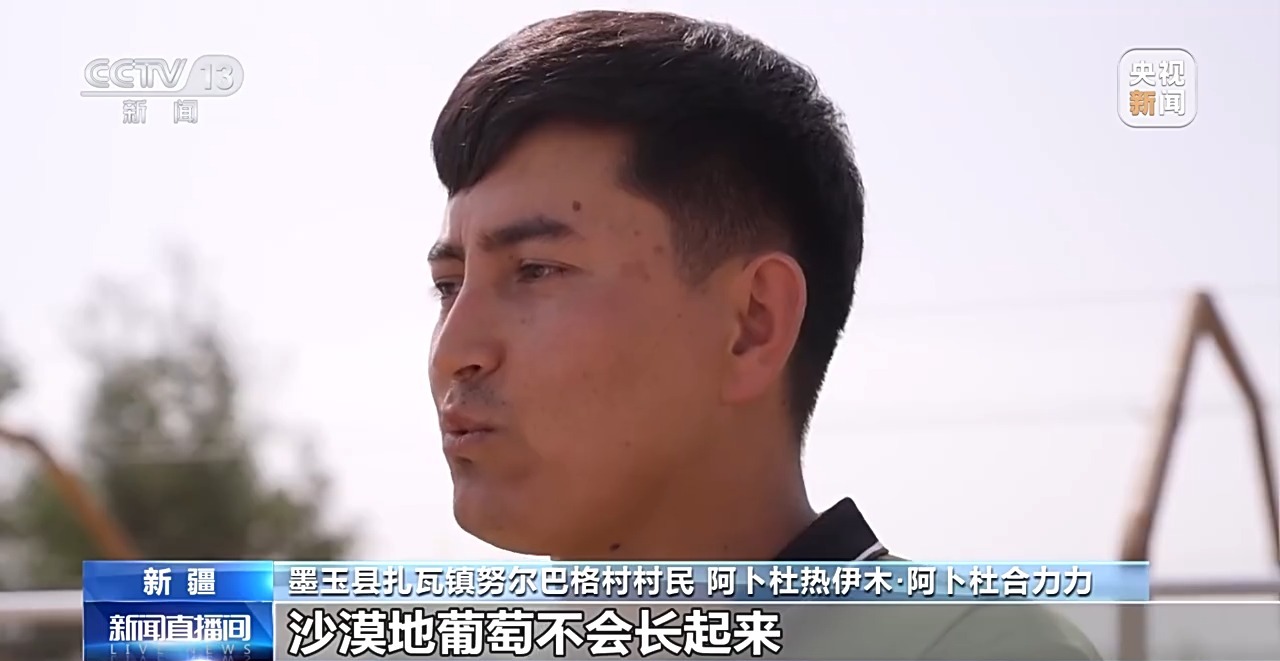 墨玉縣扎瓦鎮(zhèn)努爾巴格村村民 阿卜杜熱伊木·阿卜杜合力力:別人說你們是傻子嗎,你們腦子有問題,沙漠地葡萄不會(huì)長起來。