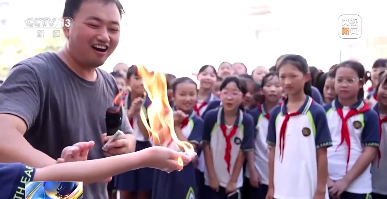 在“科技魔法秀體驗”區(qū),“火焰掌”表演讓同學(xué)們親身感受化學(xué)反應(yīng)的奇妙。這個看似“魔法”的現(xiàn)象,實則蘊(yùn)含著燃燒條件、導(dǎo)熱材料等科學(xué)原理。