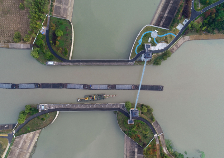 作為淮河入海水道二期工程的核心節(jié)點,淮安水利樞紐大運河水上立交建成便是“亞洲最大水立交”。京杭大運河、蘇北灌溉總渠、淮河入海水道,三條載入史冊的人工水道在此交匯,“兩橫一縱”的格局間,藏著建設(shè)者們最棘手的難題?!岸诠こ桃o鄰布置,水系又密、水頭還高。”王洪玉抬手比劃著樞紐布局,“我們先做好基坑防滲工作,再通過開挖臨時導航明渠來保障運河航運,工程在緊鑼密鼓地推進?!?/p>