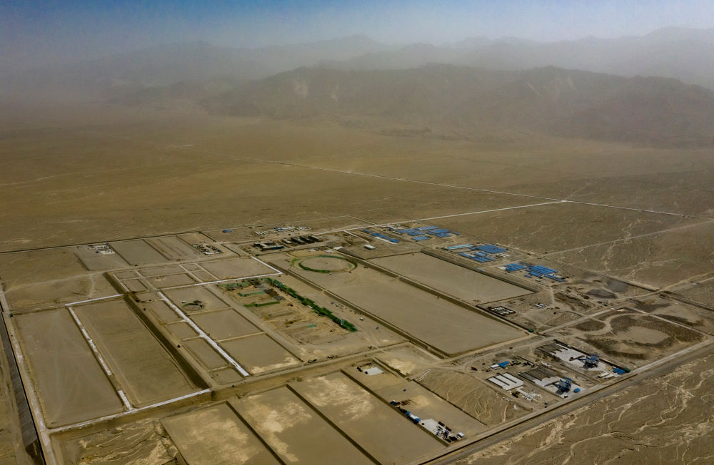 在新疆吐魯番市鄯善縣拍攝的1GW“光熱+光伏”一體化項目(7月28日攝,無人機照片)。
