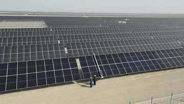 如今由太陽能光伏板匯聚成“藍(lán)色海洋”