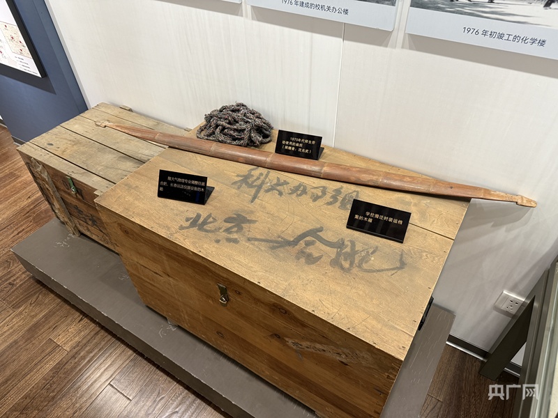 展柜中兩塊陳舊的紅色磚塊,銘刻著“史上最牛燒磚工”的故事。“當(dāng)時,為了能盡快恢復(fù)科研和教學(xué)工作,中國科大師生親手燒制了建造化學(xué)樓的紅磚,其中很多老師、學(xué)生如今已經(jīng)成長為教授甚至院士,所以我們也經(jīng)常戲稱這群燒磚工為‘史上最牛燒磚工’?!蓖趺A介紹。