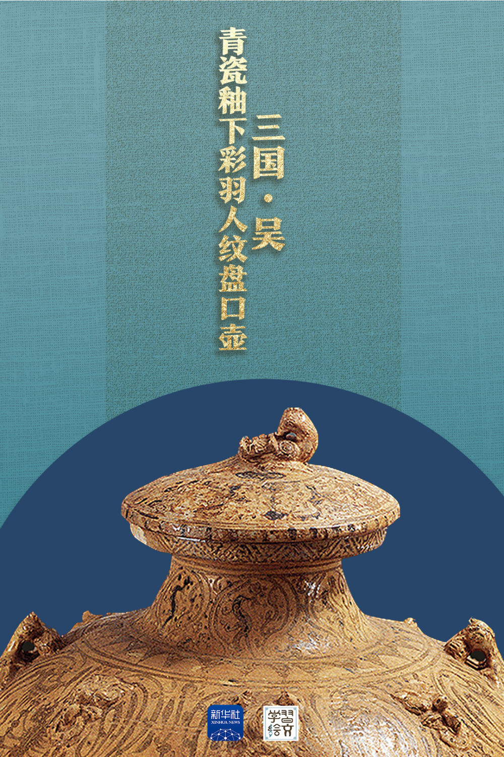 “這件藏于六朝博物館的青瓷釉下彩羽人紋盤口壺于1983年出土,精湛的釉下彩繪工藝,改變了人們對釉下彩工藝始于唐代的認(rèn)識,把我國釉下彩繪工藝出現(xiàn)的時間提前了近五百年?!彼窝嗾f。
