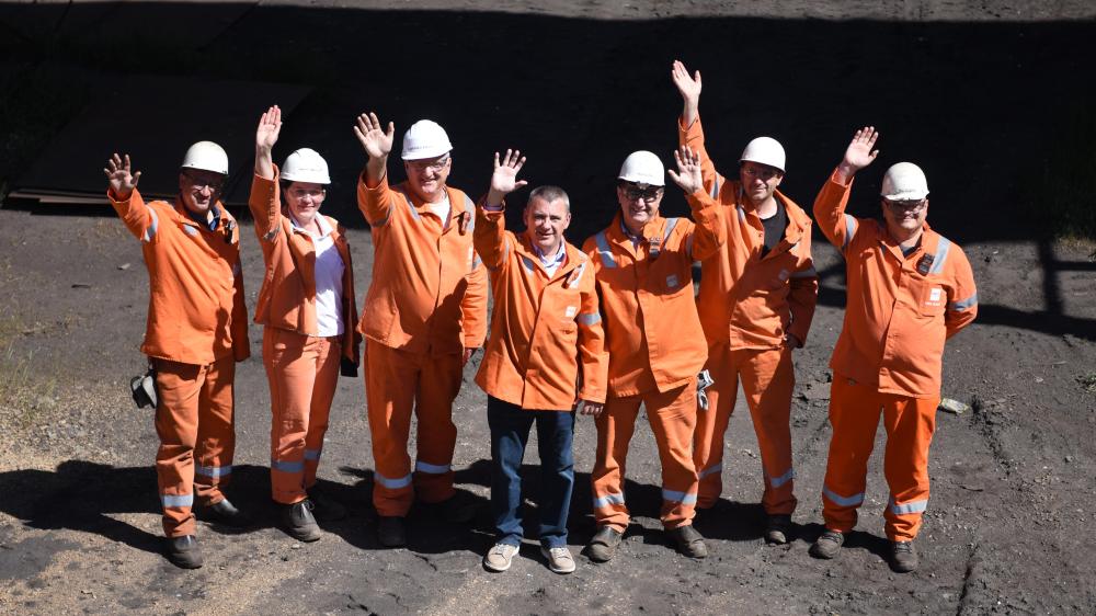 弗拉丹·米哈伊洛維奇(左四)與工友們在斯梅戴雷沃鋼廠。