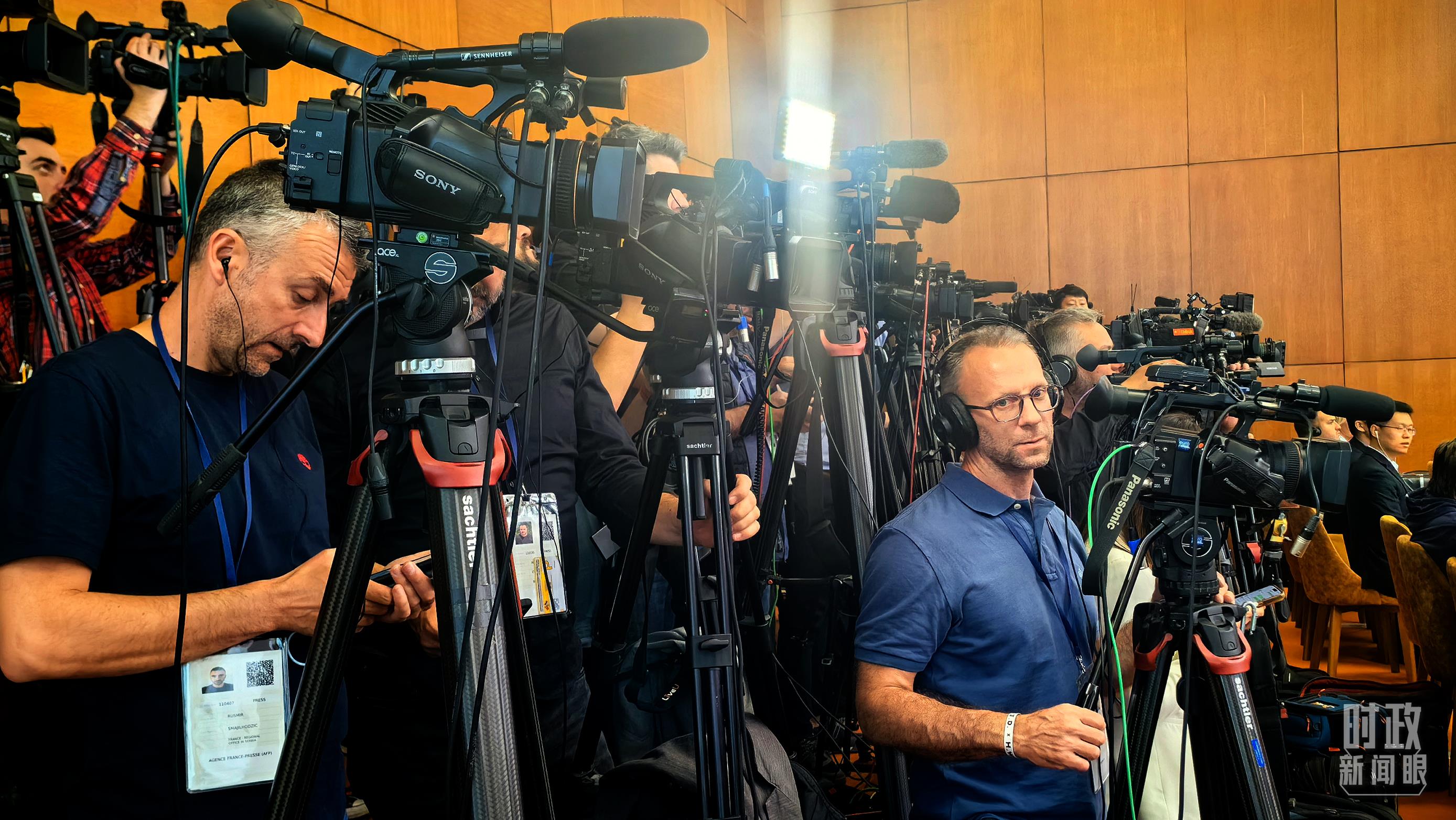 習(xí)主席同武契奇總統(tǒng)會(huì)談后共同會(huì)見(jiàn)記者,這是會(huì)見(jiàn)開(kāi)始前的現(xiàn)場(chǎng)。(總臺(tái)央視記者鄂介甫拍攝)
