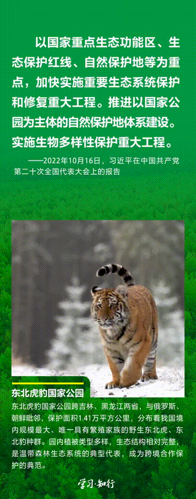 “生物多樣性使地球充滿生機,也是人類生存和發(fā)展的基礎?!蓖七M以國家公園為主體的自然保護地體系建設,是習近平總書記作出的重要部署。三江源、大熊貓、東北虎豹、海南熱帶雨林、武夷山等首批國家公園正式設立以來,生態(tài)功能持續(xù)向好,對保護生物多樣性、推進人與自然和諧共生的現(xiàn)代化具有重要意義。