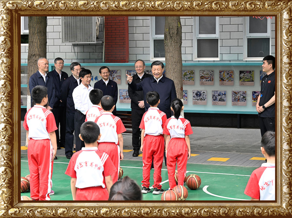 2023年5月31日上午,習(xí)近平總書記來到北京育英學(xué)??赐繂枎熒?,在籃球場同正在上體育課的小學(xué)生們親切交流。習(xí)近平親切地說:“現(xiàn)在生活條件好了,孩子們不是要吃得胖胖的,而是要長得壯壯的、練得棒棒的?!?/strong>