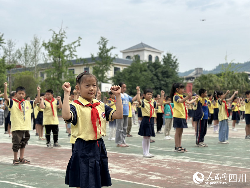 5月31日,南充市嘉陵區(qū)之江小學(xué),學(xué)生們正在進(jìn)行課間操活動(dòng)。人民網(wǎng)記者 王波攝