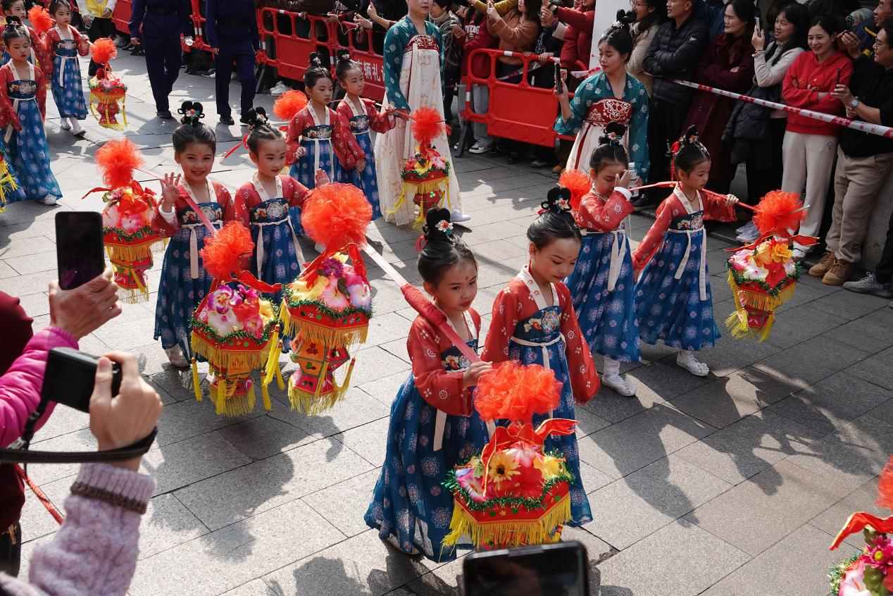 2024年3月4日,“潮州青龍廟會(huì)”非遺巡游舉行。圖為幼兒園小朋友身穿漢服在昌黎路巡游。