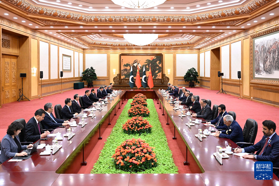 6月7日下午,國(guó)家主席習(xí)近平在北京人民大會(huì)堂會(huì)見(jiàn)來(lái)華正式訪問(wèn)的巴基斯坦總理夏巴茲。新華社記者 申宏 攝