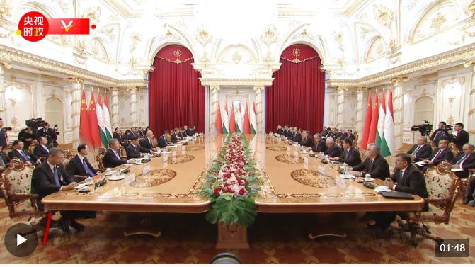 當(dāng)?shù)貢r(shí)間7月5日下午,國家主席習(xí)近平在杜尚別總統(tǒng)府同塔吉克斯坦總統(tǒng)拉赫蒙舉行大范圍會(huì)談。