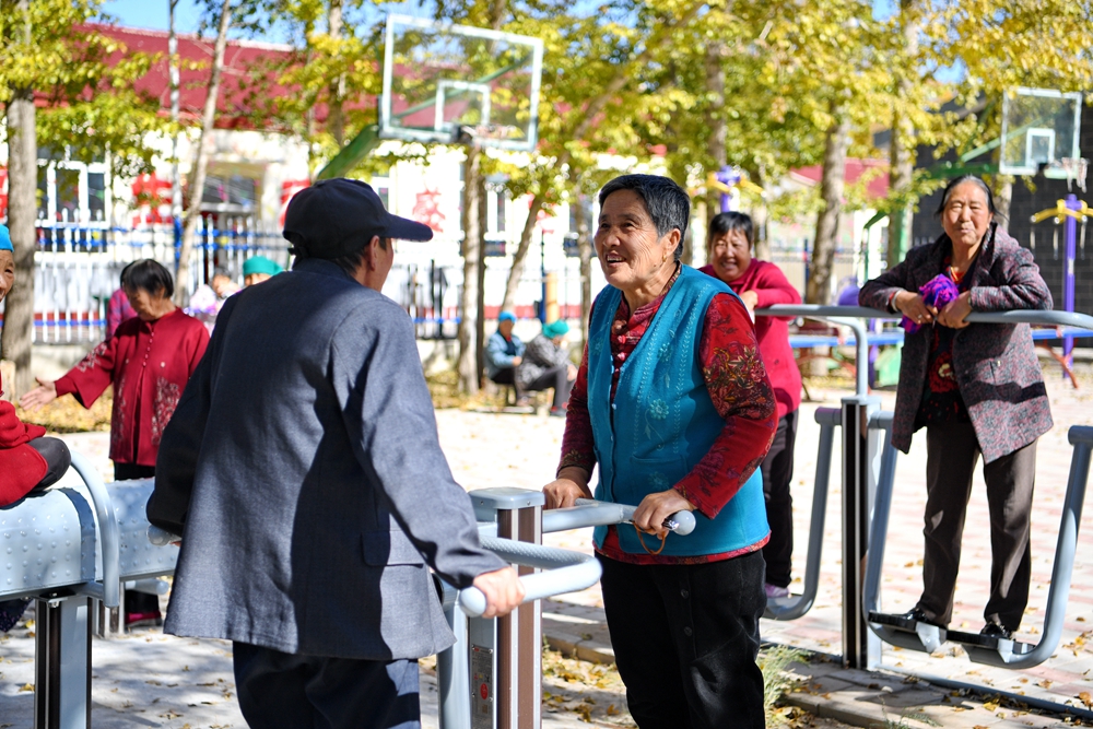 居住在河北省康保縣土城子鎮(zhèn)互助幸福院的老人們在院子里休閑(2023年10月14日攝)。新華社記者 牟宇 攝