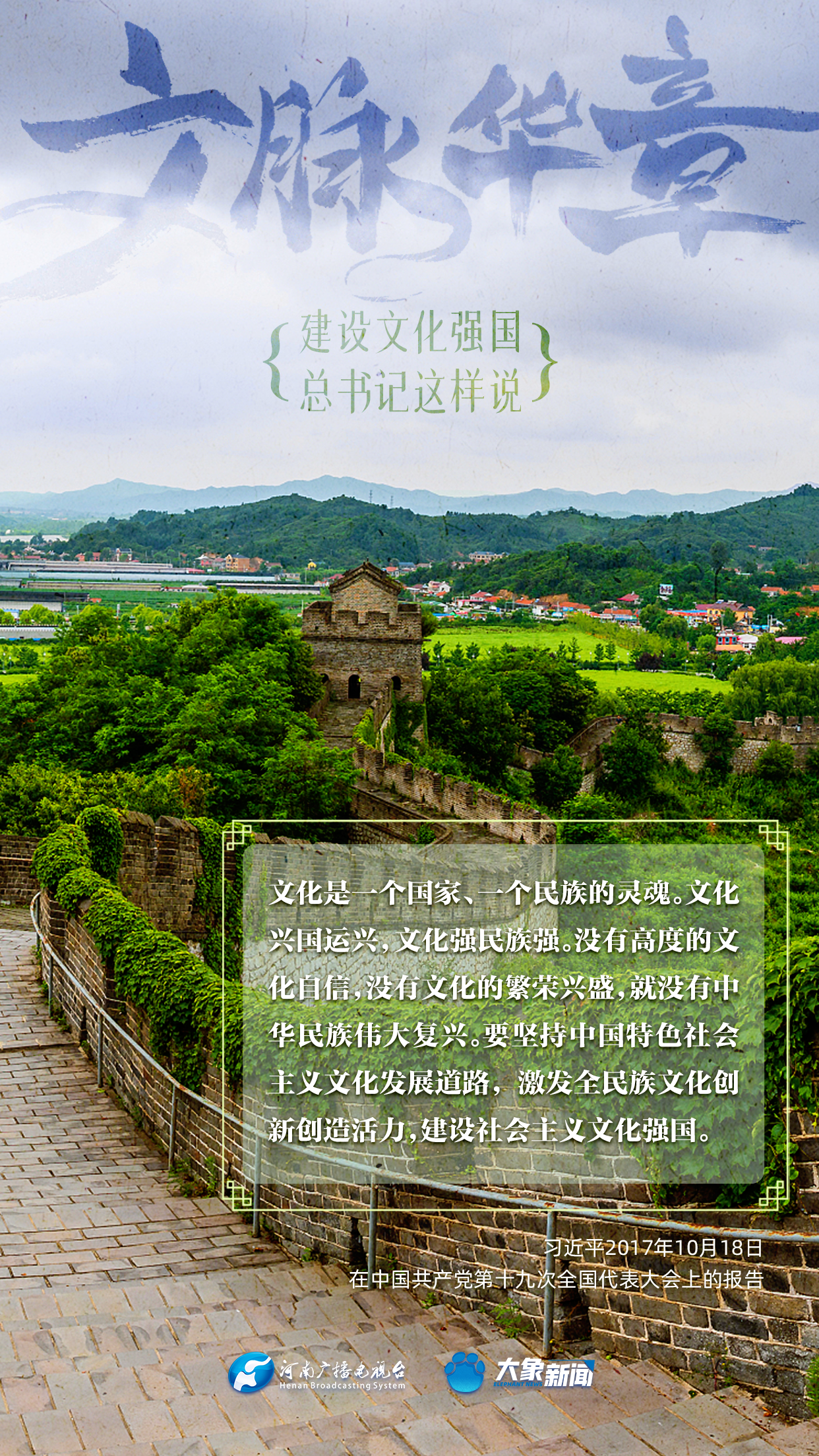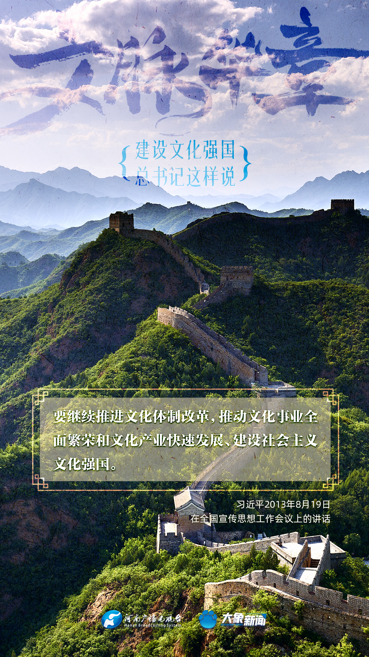 黨的十八大以來,習(xí)近平總書記站在全局和戰(zhàn)略高度,就建設(shè)社會(huì)主義文化強(qiáng)國提出一系列新思想新觀點(diǎn)新論斷,為我們堅(jiān)定文化自信,堅(jiān)持中國特色社會(huì)主義文化發(fā)展道路,提供了指引。大象新聞與您一起學(xué)習(xí)、領(lǐng)悟。