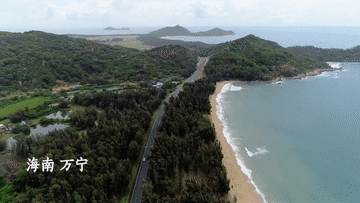 海南島東南角,驅(qū)車從萬寧小海到石梅灣,約40公里的濱海風(fēng)光一覽無余。清退養(yǎng)殖池塘,補種生態(tài)林木,曾經(jīng)臟亂破敗的岸灘,如今成了當?shù)刈蠲篮0毒€。