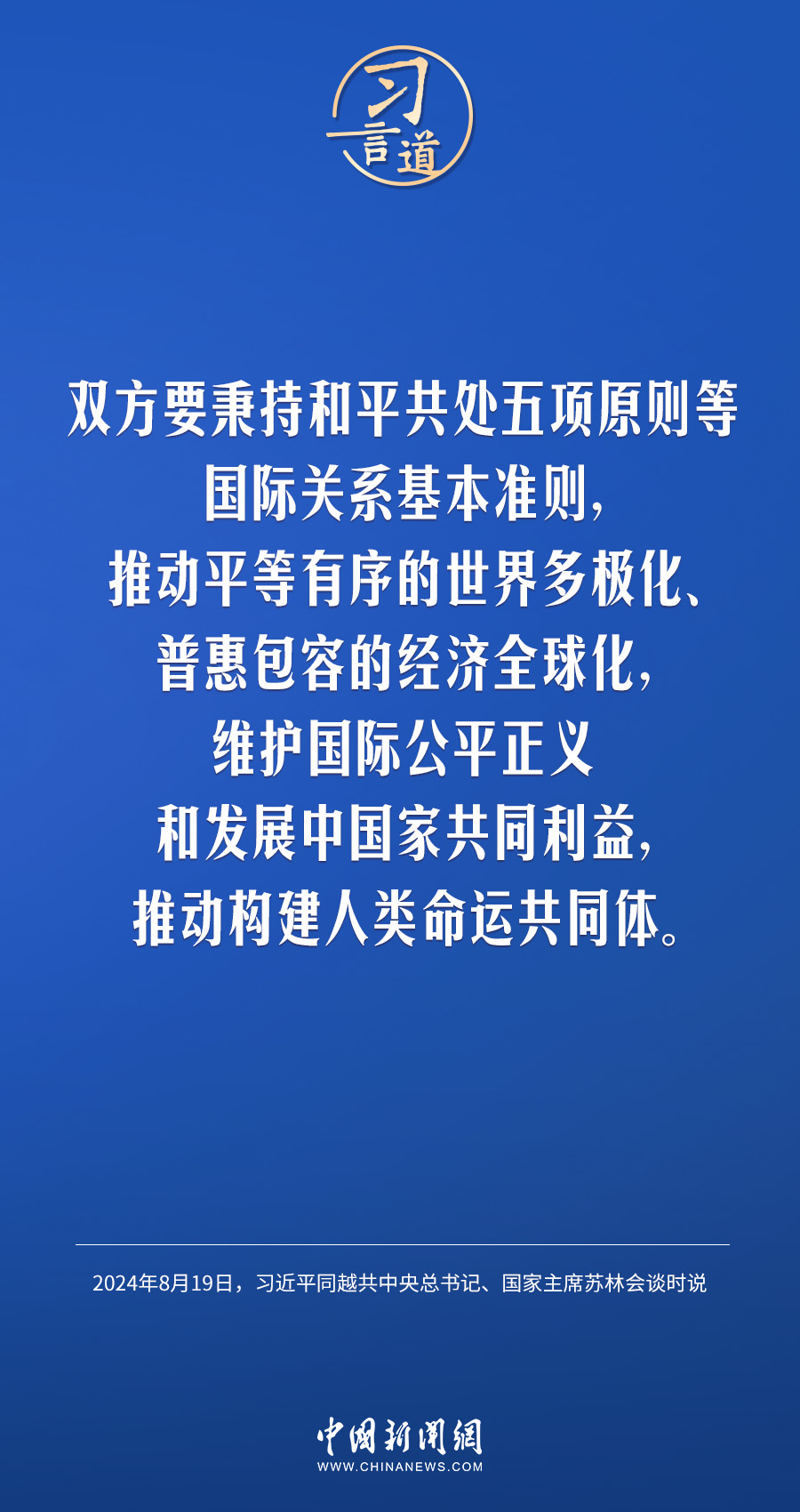 8月19日,中共中央總書記、國家主席習(xí)近平在北京人民大會(huì)堂同來華進(jìn)行國事訪問的越共中央總書記、國家主席蘇林舉行會(huì)談。習(xí)近平指出——