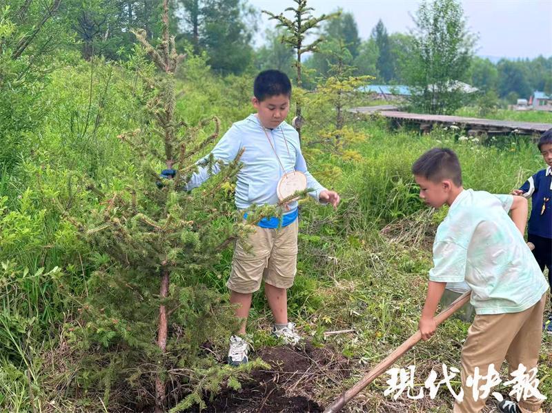 這樣的美麗風(fēng)景讓第一次來到大草原的周云昊很興奮?!拔覀儚漠?dāng)?shù)亓私獾?,這是一代又一代人努力的結(jié)果,讓我們也深切感受到生態(tài)保護(hù)的重要性?!毖袑W(xué)途中,周云昊和小伙伴們還專門在當(dāng)?shù)亓謭?chǎng)種下一棵樹。“希望它能健康長大,成為守護(hù)綠色草原的小衛(wèi)士?!?/p>