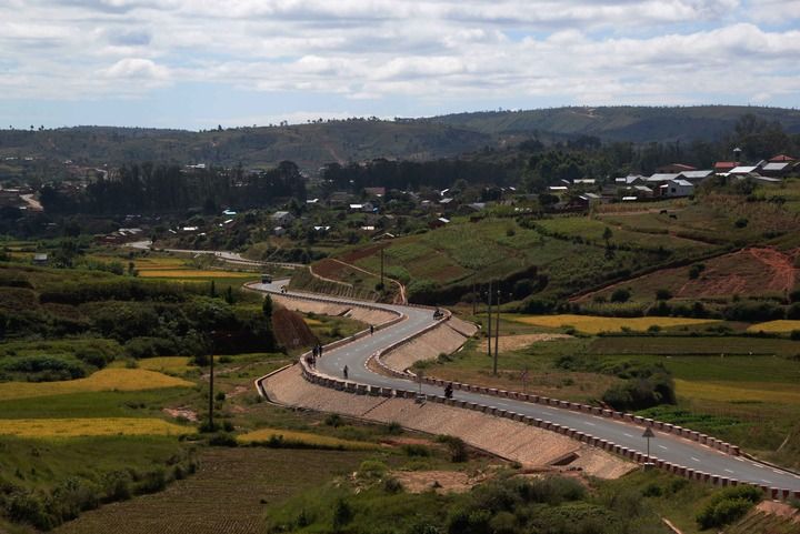 這是2022年5月3日在馬達加斯加首都塔那那利佛郊區(qū)拍攝的由中國政府無償援建的“雞蛋路”。 新華社發(fā)(西塔卡·拉喬納里松 攝)
