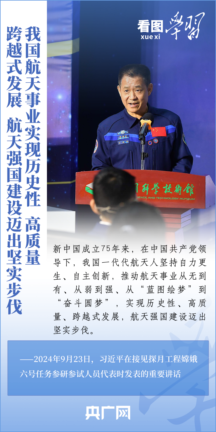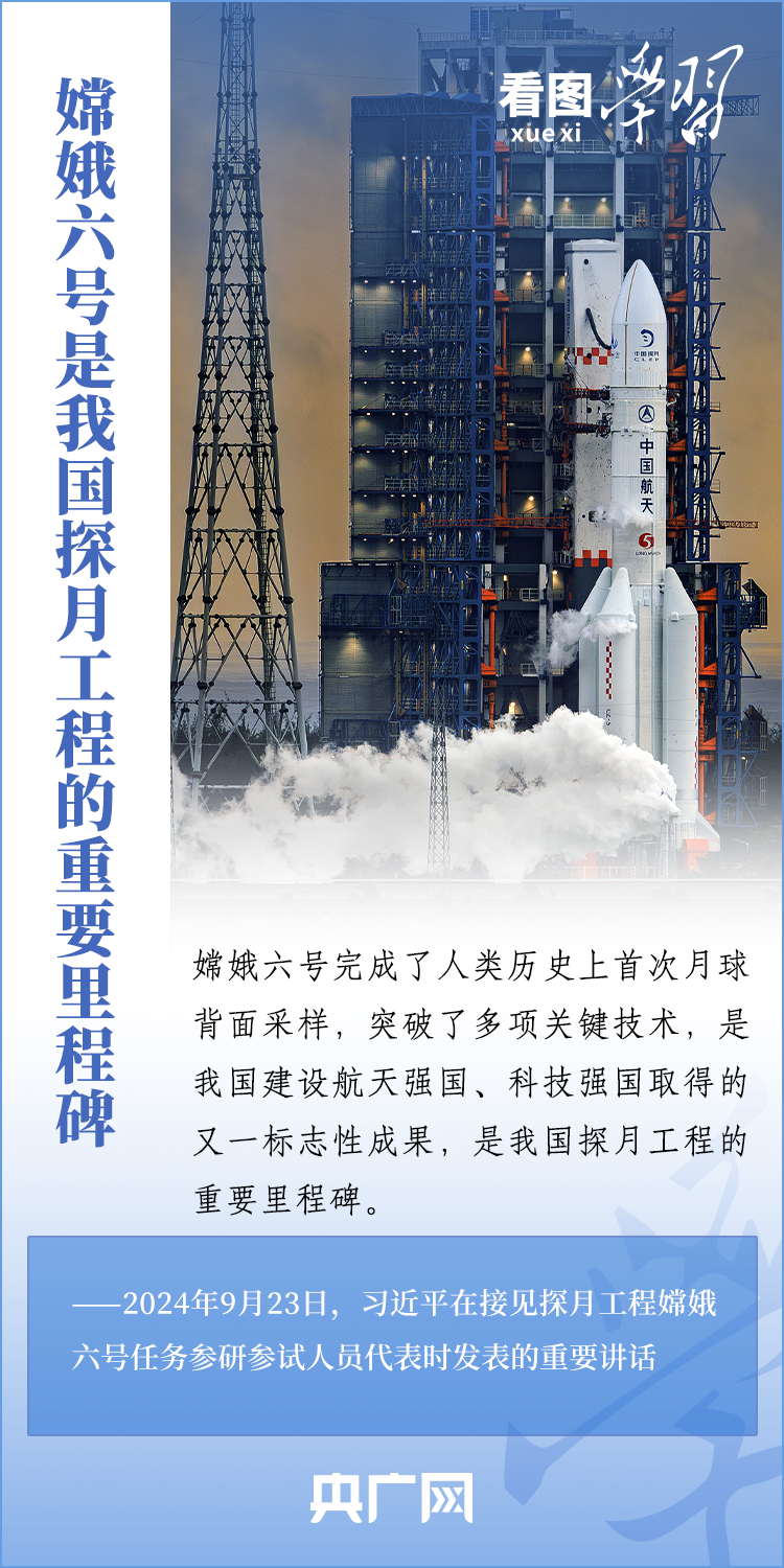 中國(guó)探月工程成果凝結(jié)著我國(guó)幾代航天人的智慧和心血。9月23日,習(xí)近平總書記接見探月工程嫦娥六號(hào)任務(wù)參研參試人員代表并發(fā)表重要講話??倳浉叨瓤隙ㄦ隙鹆?hào)任務(wù)成功的重要意義,以及探月工程為我國(guó)航天事業(yè)發(fā)展、為人類探索宇宙空間作出的重大貢獻(xiàn),勉勵(lì)航天戰(zhàn)線工作者再接再厲、乘勢(shì)而上,為建設(shè)航天強(qiáng)國(guó)再立新功。一起來學(xué)習(xí)!
