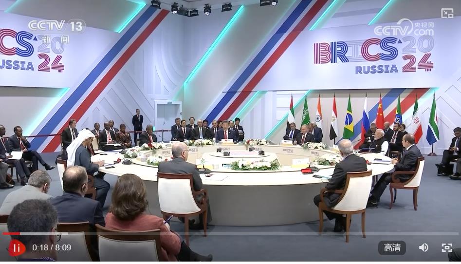 當?shù)貢r間10月23日上午,金磚國家領導人第十六次會晤在喀山會展中心舉行。俄羅斯總統(tǒng)普京主持會晤。中國國家主席習近平、巴西總統(tǒng)盧拉(線上)、埃及總統(tǒng)塞西、埃塞俄比亞總理阿比、印度總理莫迪、伊朗總統(tǒng)佩澤希齊揚、南非總統(tǒng)拉馬福薩、阿聯(lián)酋總統(tǒng)穆罕默德等出席。