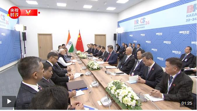 當?shù)貢r間10月23日,國家主席習近平在喀山出席金磚國家領導人會晤期間會見印度總理莫迪。