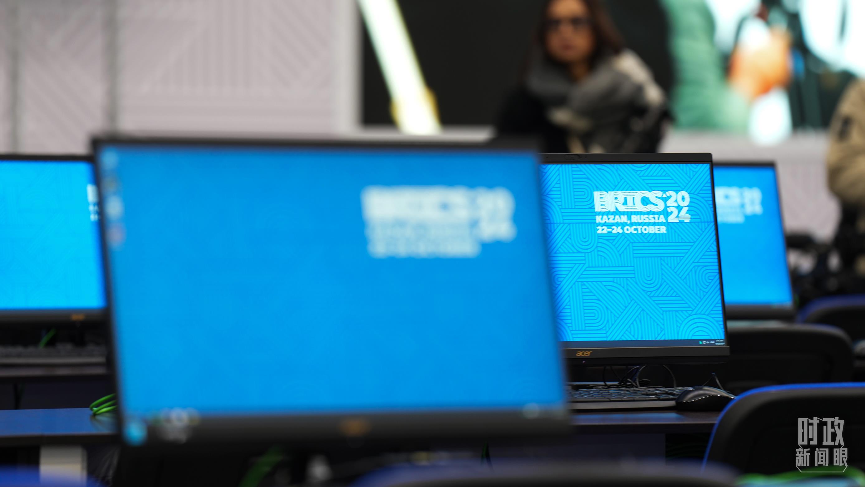 金磚國家領(lǐng)導人第十六次會晤新聞中心。(總臺記者李晉拍攝)