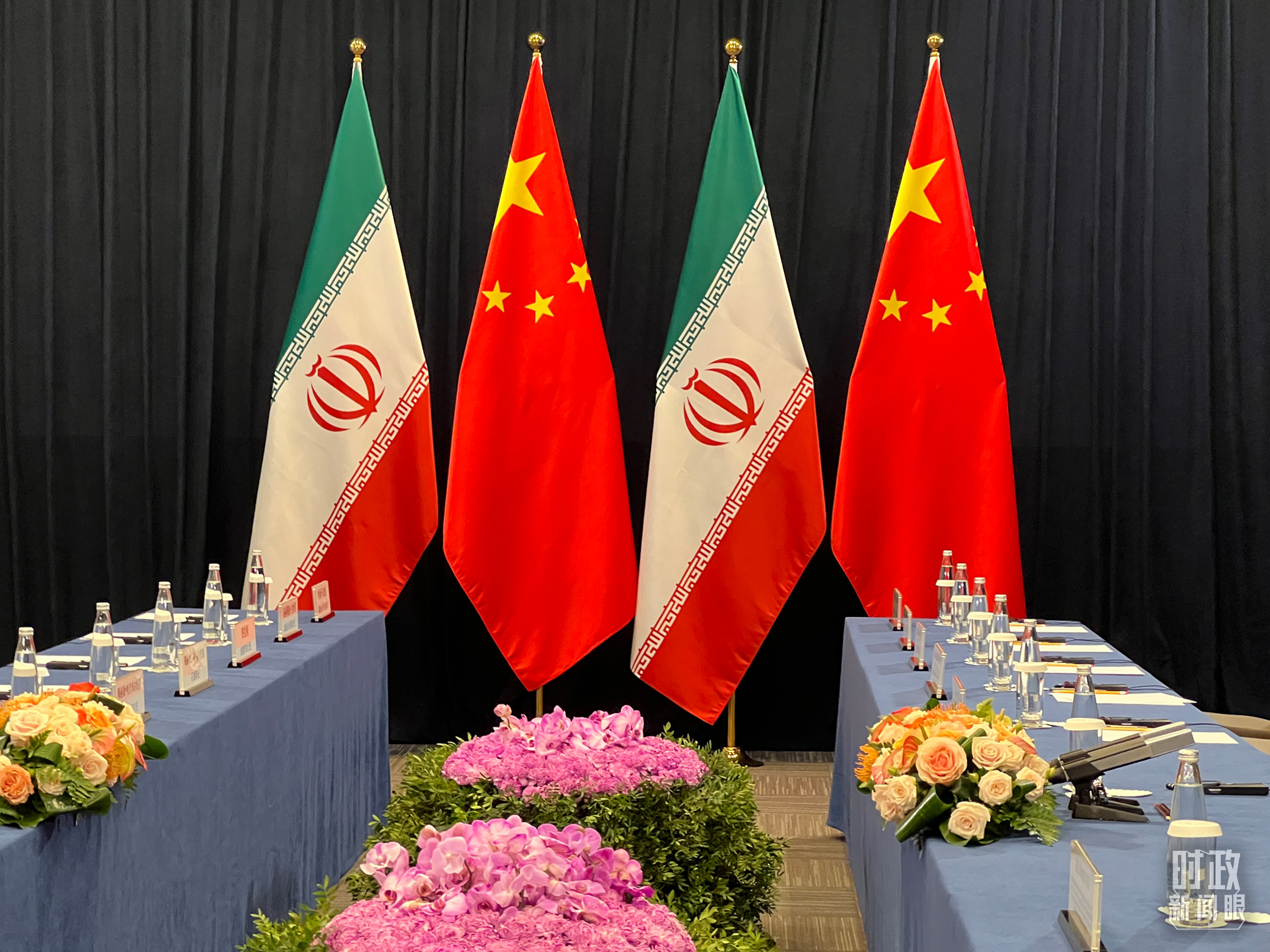 中伊領(lǐng)導人會見開始前的現(xiàn)場。(總臺央視記者楊新禹拍攝)