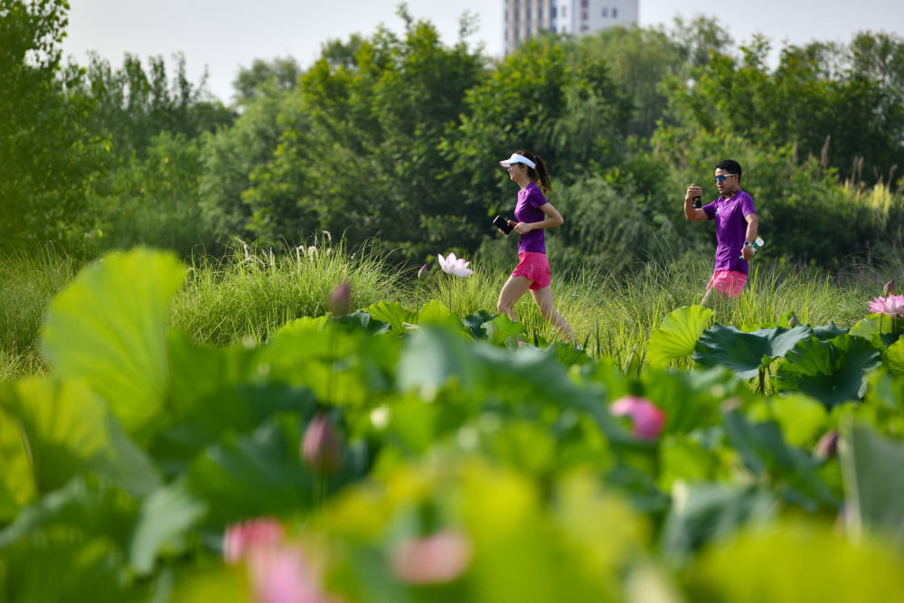 2024年6月23日,市民在陜西省漢中市天漢濕地公園內(nèi)運(yùn)動(dòng)休閑。漢江是長(zhǎng)江的最大支流,是南水北調(diào)中線(xiàn)工程的重要水源。近年來(lái),漢中市加強(qiáng)對(duì)漢江源頭和沿岸濕地生態(tài)保護(hù)修復(fù),構(gòu)建人水和諧共生的美麗城市,確?!耙汇逅览m(xù)北上”。