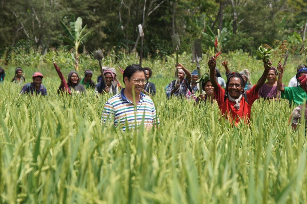 2019年12月17日,首次參與中國援巴新旱稻項目的巴布亞新幾內(nèi)亞農(nóng)戶,看到自己種植的旱稻長勢喜人。