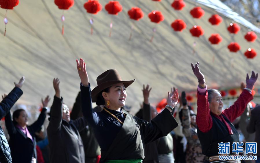 3月8日,人們在拉薩龍王潭公園跳舞。新華社記者 覺果 攝