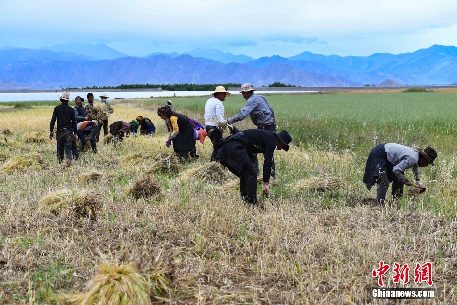 9月8日,西藏自治區(qū)拉薩市林周縣春堆鄉(xiāng)的農(nóng)民在搶收青稞。金秋時節(jié),拉薩河谷一帶青稞成熟,農(nóng)民在青稞田忙碌,一片繁忙景象。中新社記者 貢嘎來松 攝