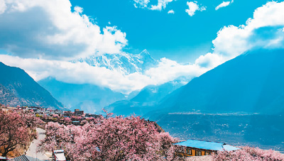 南迦巴瓦峰位于喜馬拉雅山脈東端,山體終年積雪,常被云霧籠罩。索松村位于林芝市米林縣,是欣賞南迦巴瓦峰景觀的最佳位置之一。每當春暖花開時,沿江數(shù)十里的桃花次第盛開,獨特的景色吸引著各地游客慕名而來。