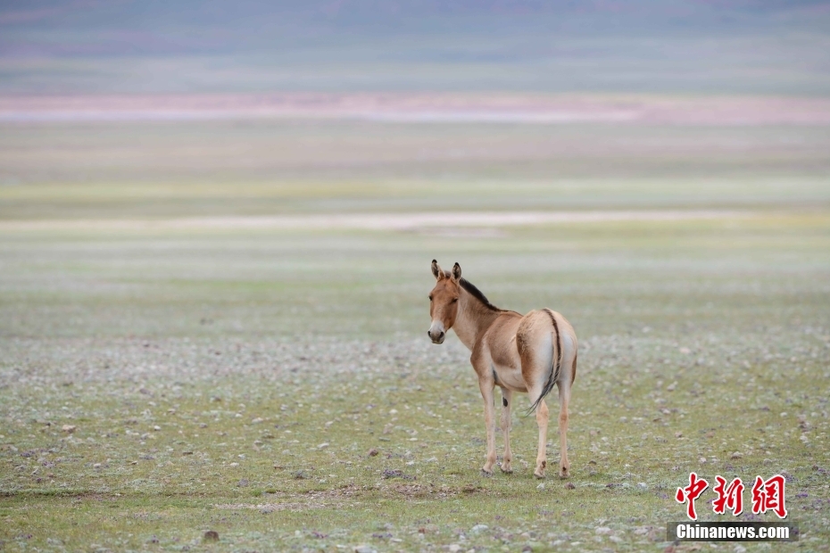 7月16日,西藏那曲羌塘草原上的藏野驢。羌塘草原位于西藏北部,是野生動物的樂園。 中新社記者 貢嘎來松 攝