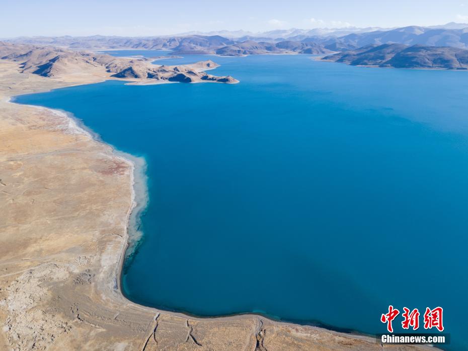 近日,西藏自治區(qū)山南市羊卓雍錯(簡稱羊湖),冬日由于沒有云層遮擋,湖水更顯深藍、孔雀藍。航拍視角下,湖水像巨大的寶石鑲嵌于高原大地,風(fēng)光壯麗。羊卓雍錯藏語意為“碧玉湖”,湖面海拔4441米,與納木錯、瑪旁雍錯并稱西藏三大“圣湖”。圖為航拍冬日羊卓雍錯。 江飛波 攝