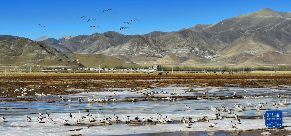 這是崗布錯結冰的湖面(1月1日攝)。新華社記者 姜帆 攝
