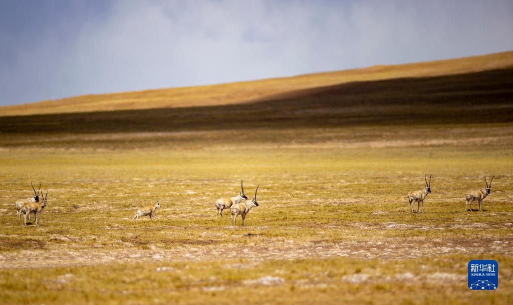 這是在羌塘國家級自然保護區(qū)那曲市雙湖縣區(qū)域內(nèi)拍攝到的藏羚羊(4月15日攝) 。新華社記者 姜帆 攝