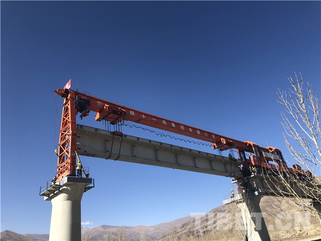 中國西藏網(wǎng)訊 3月19日,記者隨“西藏民主改革60周年”中央媒體采訪團(tuán)抵達(dá)西藏自治區(qū)山南市貢嘎縣,見證了拉林鐵路杰德秀1號特大橋鋪架橋梁工程的順利進(jìn)行。