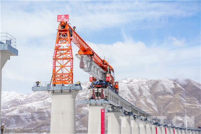 圖為中鐵十一局三公司鋪架人員緊張施工中
