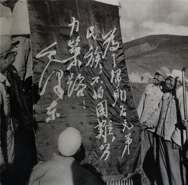 毛主席號召“為了幫助各兄弟民族,不怕困難,努力筑路!”