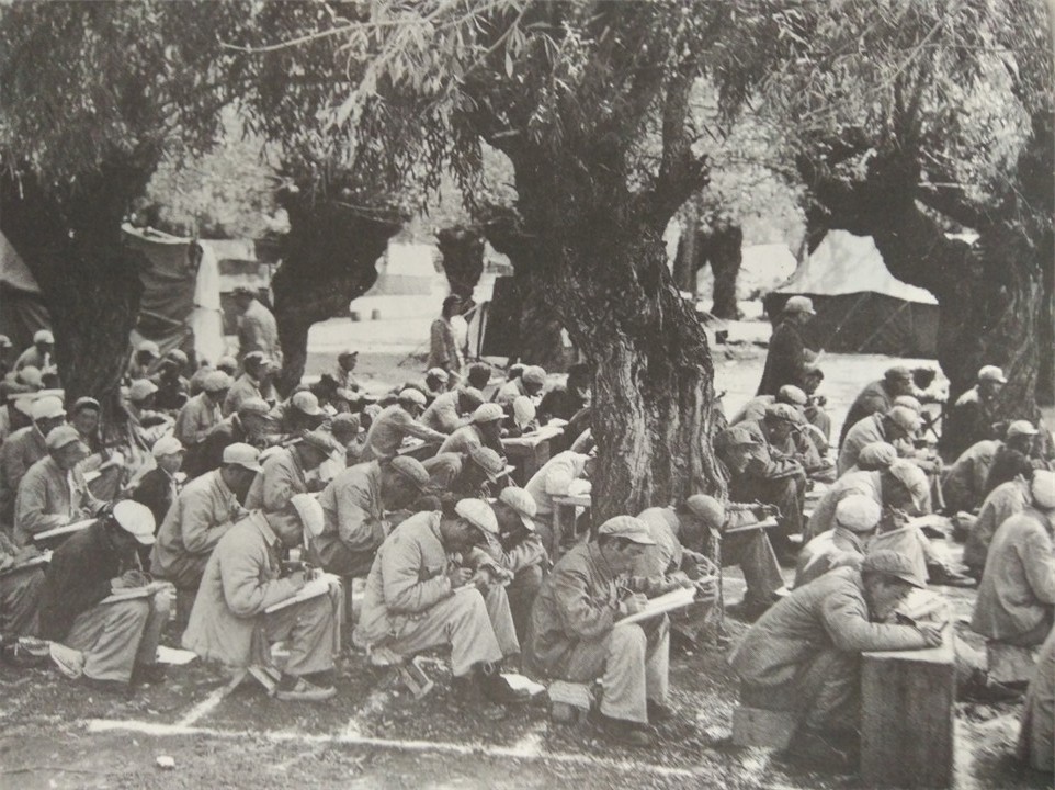 圖為十八軍官兵學習藏文。翻拍:孫健