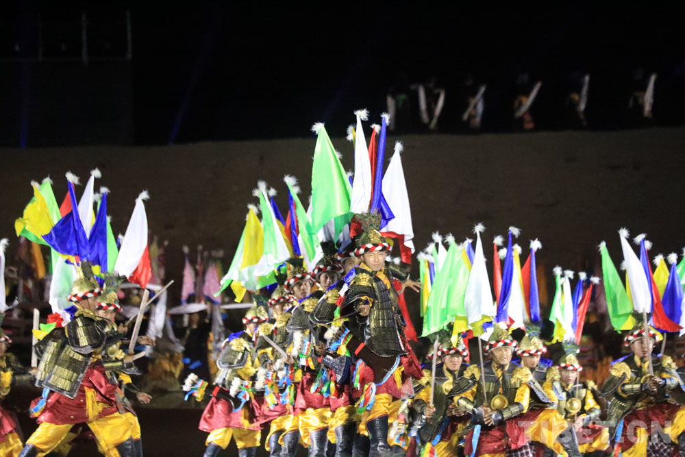 開幕式上,不拘一格的《播種藏漢情懷》開場(chǎng),讓觀眾眼前一亮,《幸福扎囊》《騰飛扎囊》《盛世扎囊》等篇章,通過室外借景構(gòu)景,讓演出和扎囊夜色相得益彰,呈現(xiàn)出視覺和聽覺的沖擊感,彰顯民族特色文化底蘊(yùn),充分體現(xiàn)了扎囊縣改革發(fā)展穩(wěn)定的大好局面,以及扎囊各族干部群眾投身全縣經(jīng)濟(jì)社會(huì)發(fā)展的豪情壯志。
