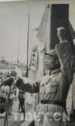 圖為1953年,苗丕一書記帶領波密分工委同志學習藏語
