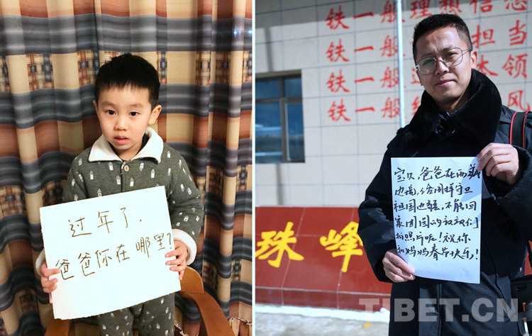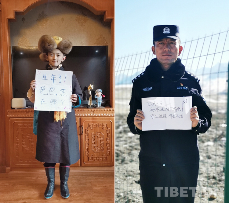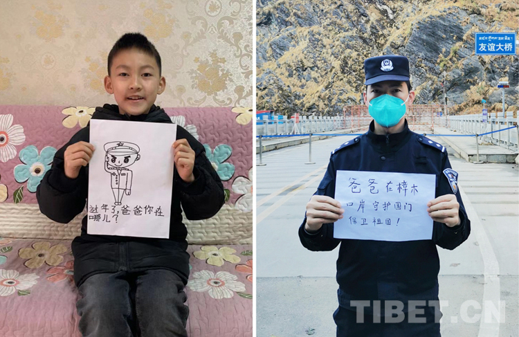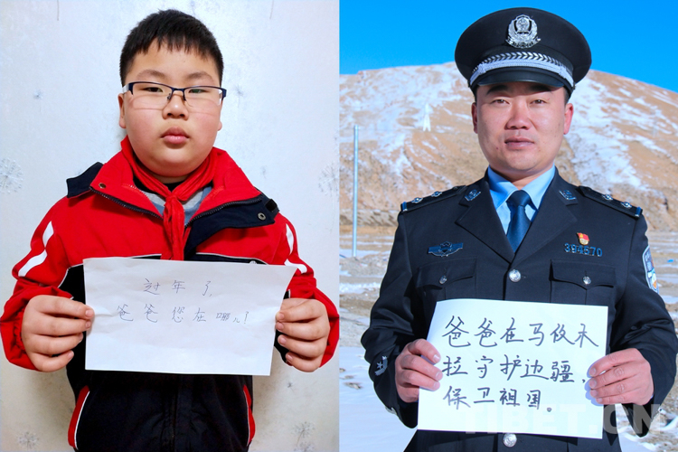 這是一張拼版照片,孩子名叫平措扎西,今年5歲,3年沒和爸爸一起過年了,今年和媽媽在日喀則過年。爸爸格瑪次仁是西藏出入境邊防檢查站阿里邊境管理支隊(duì)扎西崗邊境派出所民警,新春將至,他和他的戰(zhàn)友堅(jiān)守在海拔4400米、位于獅泉河下游的典角村,默默守護(hù)著邊境一線的安全穩(wěn)定。